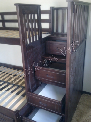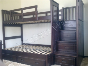 Кровать «Саванна+» Размеры спального места нижнего яруса: Ширина: 120см. Длина: 190см. Размеры спального места верхнего яруса: Ширина: 90см. Длина: 190см. Габаритные размеры: Ширина: 132см. Длина: 250см. Высота: 170см. Кровать раскладывается на две кровати. Кровать с двумя выдвижными ящиками для белья на направляющих. В ступеньках лестницы выдвижные ящики. В основании кроватисосновые лаги, ламели. Материал изготовления: сосна, ольха, ясень, дуб.