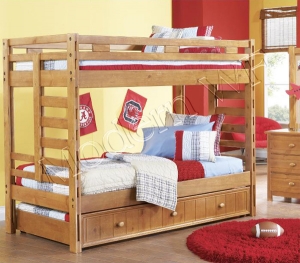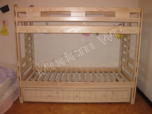 Кровать «Оскар» Размеры спального места нижнего яруса: Ширина: 90см. Длина: 200см. Размеры спального места верхнего яруса: Ширина: 90см. Длина: 200см. Размеры спального места дополнительной кровати: Ширина: 90см. Длина: 192см. (толщина матраса до 20см.) Габаритные размеры: Ширина: 100см. Длина: 212см. Высота: 172см. Кровать не раскладывается на две кровати. Доп. кровать на колесиках. В основании кроватисосновые лаги, ламели. Материал изготовления: сосна, ольха, ясень, дуб.