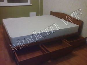 Кровать «Домино» Размеры спального места: Ширина: 140 см. 160 см. 180 см. Длина : 190 см. 200 см. 200см. Габаритные размеры: Ширина: 150 см. 170 см. 190 см. Длина: 198см. 208см. 208см. Высота изножья: 40см. 40см. 40см. Высота изголовья: 40см. 40см. 40см. От пола до основания кровати: 28см. В основании кровати деревянные лаги. В кровати 6 выдвижных ящиков на телескопических металлических направляющих. Глубина ящиков 11см. дно – фанера. Есть возможность изготовить с подъемным механизмом на газовых амортизаторах. Материал изготовления: сосна, ольха, ясень, дуб.