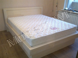 Кровать «Соната» Размеры спального места: Ширина: 140 см. 160 см. 180 см. Длина : 190 см. 200 см. 200см. Габаритные размеры: Ширина: 156 см. 176 см. 196 см. Длина: 205см. 215см. 215см. Высота изножья: 34см. 34см. 34см. Высота изголовья: 90см. 90см. 90см. От пола до основания кровати: 30см. В основании кровати деревянные лаги. Кровать можно изготовить с подъемным механизмом на газовых амортизаторах. Материал изготовления: сосна, ольха, ясень, дуб.