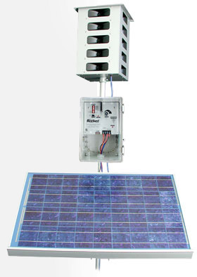 Используется для защиты больших территорий, в частности аэродромов, предприятий агрокомплекса, портовых сооружений.Сменная память прибора содержит 8 различных цифровых записей голосов птиц. Набор данных записей может быть изменен в зависимости от орнитологической обстановки и поставленной заказчиком задачи.Большая площадь защищаемой территории — до 12 га. (благодаря 20-ти высококачественнымдинамикам).Диапазон частот — 2000 — 10000ГцПитание — от автомобильного аккумулятора.Наличие в комплекте солнечной панели позволяет существенно удлинить время междуподзарядками батареи.