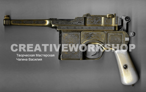 Мастерская принимает заказы на украшение оружия.Весь спектр услуг-от разработки дизайна до его технического воплощения.Художественное травление металла и гравировка,нанесение металлических покрытий,работа с кожей и костью.