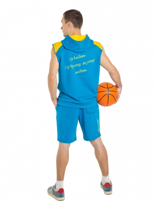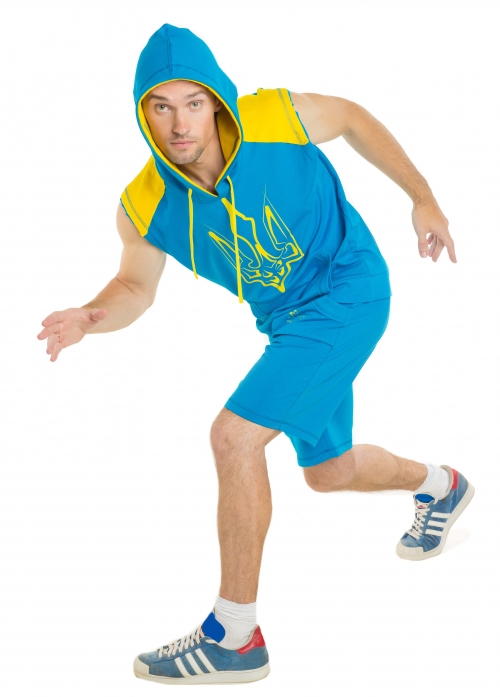 Безрукавка мужская – один из главных атрибутов мужского гардероба. Ярко-голубая безрукавка с желтым капюшоном – это одновременно и патриотично, и позитивно. Такая одежда поднимет вам настроение и вызовет улыбки одобрения у патриотов нашей страны.
