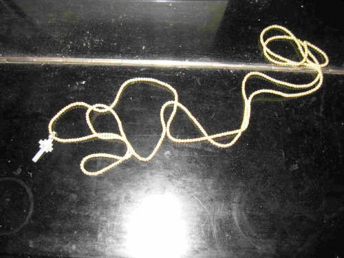 Продам бусы (под жемчуг) с металлическим крестиком.