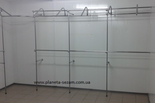 Сборные конструкции из хромированной трубы. Хромированная труба и комплекс фурнитуры от системы «джокер» позволяют создавать различнейшие по виду и назначению конструкции- как рекламные стойки и выставочные стенды так и торговое оборудование, настенные и островные вешалки и даже мобильные и стационарные перегородки и примерочные комнаты. Система джокер собирается и разбирается очень быстро и просто, позволяет менять конфигурацию и размеры конструкций из трубы по месту.
