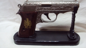 Вы еще никогда не прикуривали от пистолета? Тогда у вас появилась такая возможность. Зажигалка пистолет на первый взгляд ничем не отличается от настоящего оружия, только при нажатии на курок, вы поймёте её неординарное предназначение. Она крепится на специальной подставке, что делает её ещё и необычным сувениром, который можно подарить другу, коллеге или руководителю. Оригинальная зажигалка Пистолет – это изысканный аксессуар, который придётся по душе каждому, даже некурящему человеку.Просмотреть и купить зажигалку Пистолет можно у нас в магазине или на сайте.